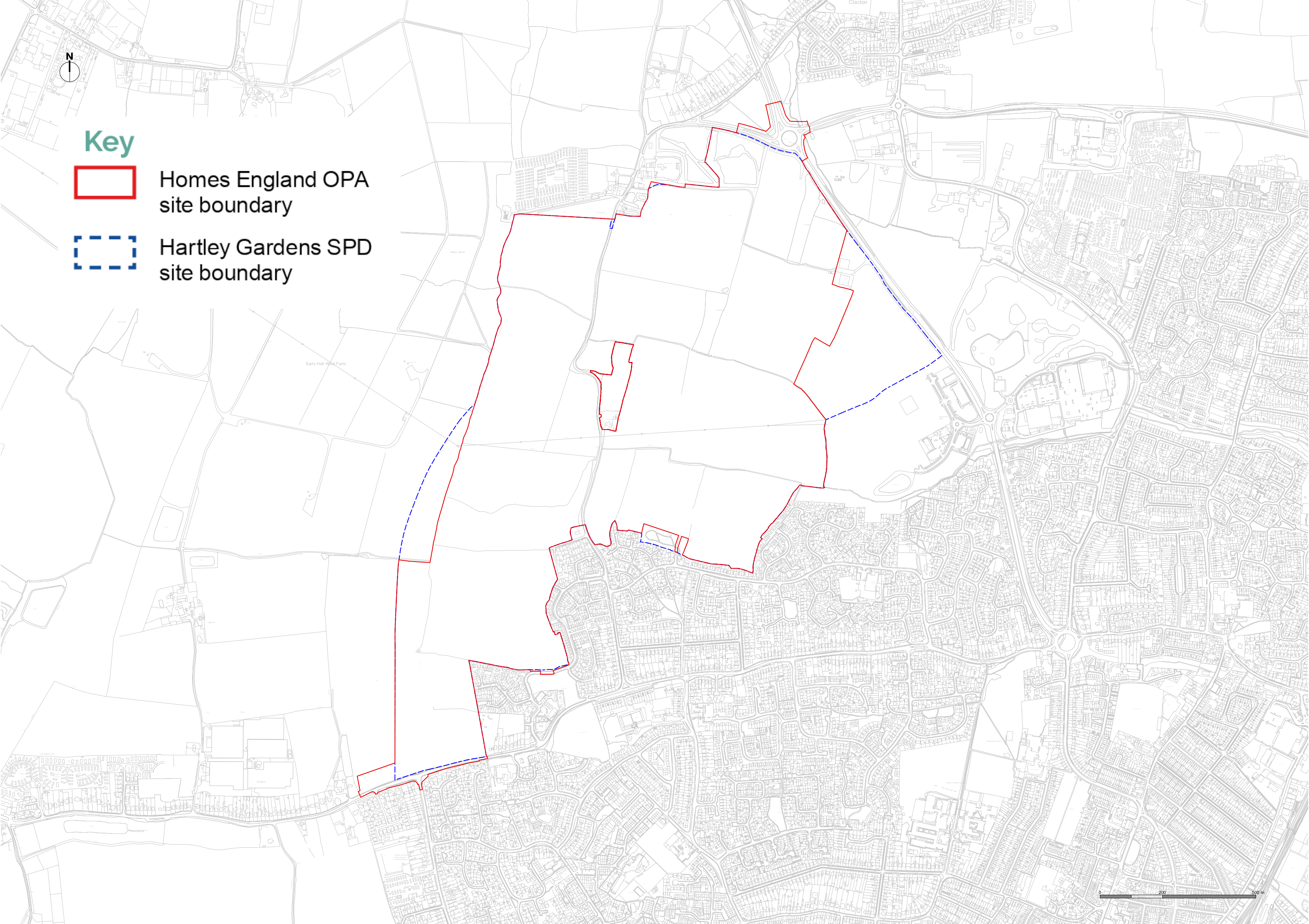 Homes England is in the process of preparing an Outline Planning Application (OPA) covering the majority of the land within the ‘Hartley Gardens’ site allocated in the Tendring Local Plan.