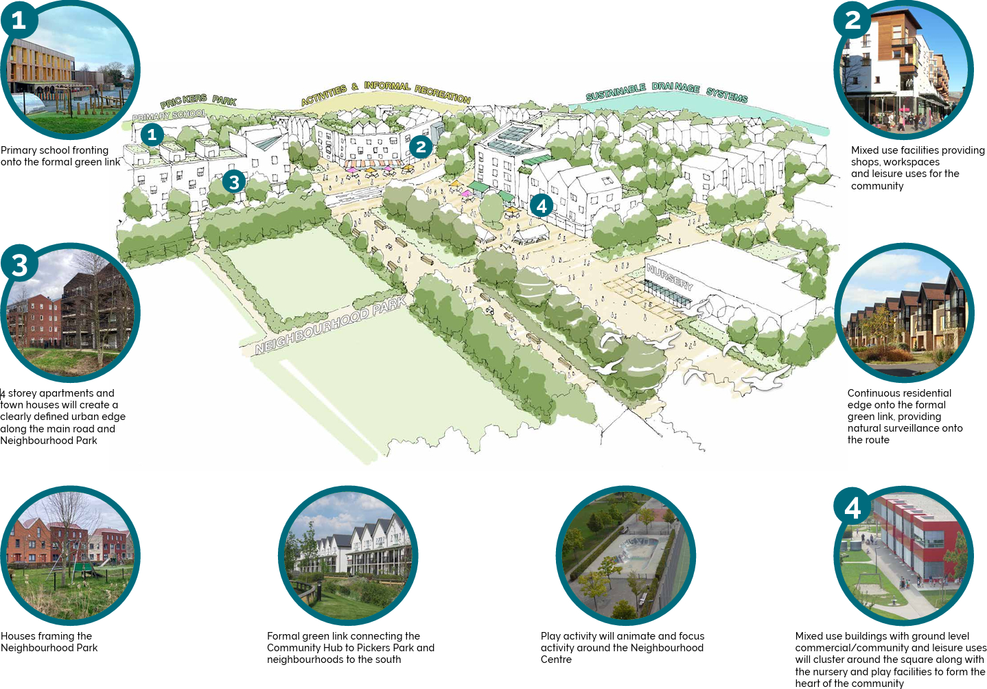 Hartley Gardens offers an opportunity to create its own identity. Homes England’s proposals will create three distinct neighbourhoods for the application site, in accordance with the SPD:
